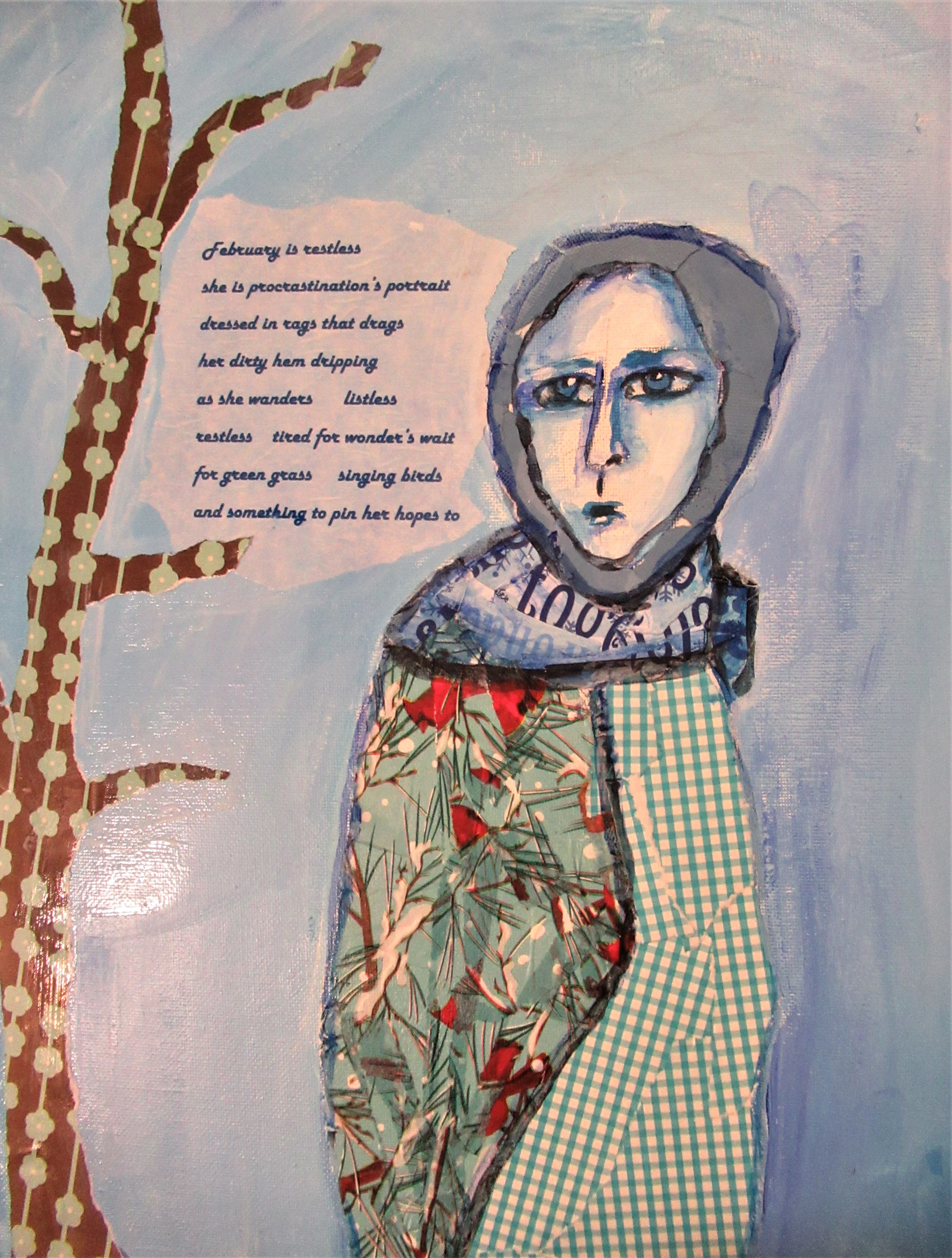 After copying the poem, I sketched out the ideea of a woman looking back, not fearfulfully, but a sense of having made it through the winter. That was my idea